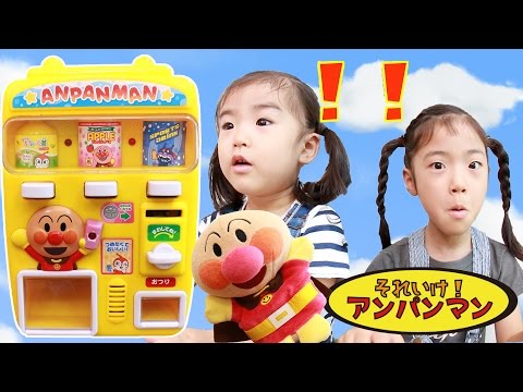 ちびっこが大好きなアンパンマンのじどうはんばいきのオモチャです。後ろからジュースをセットしてお金をいれて、ジュースを買ったらちゃん.